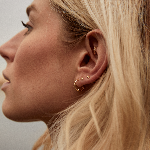 The Helga ear cuff set is a must-have item and a spring favourite. One simple polished cuff accompanied by twisted croissant like design.